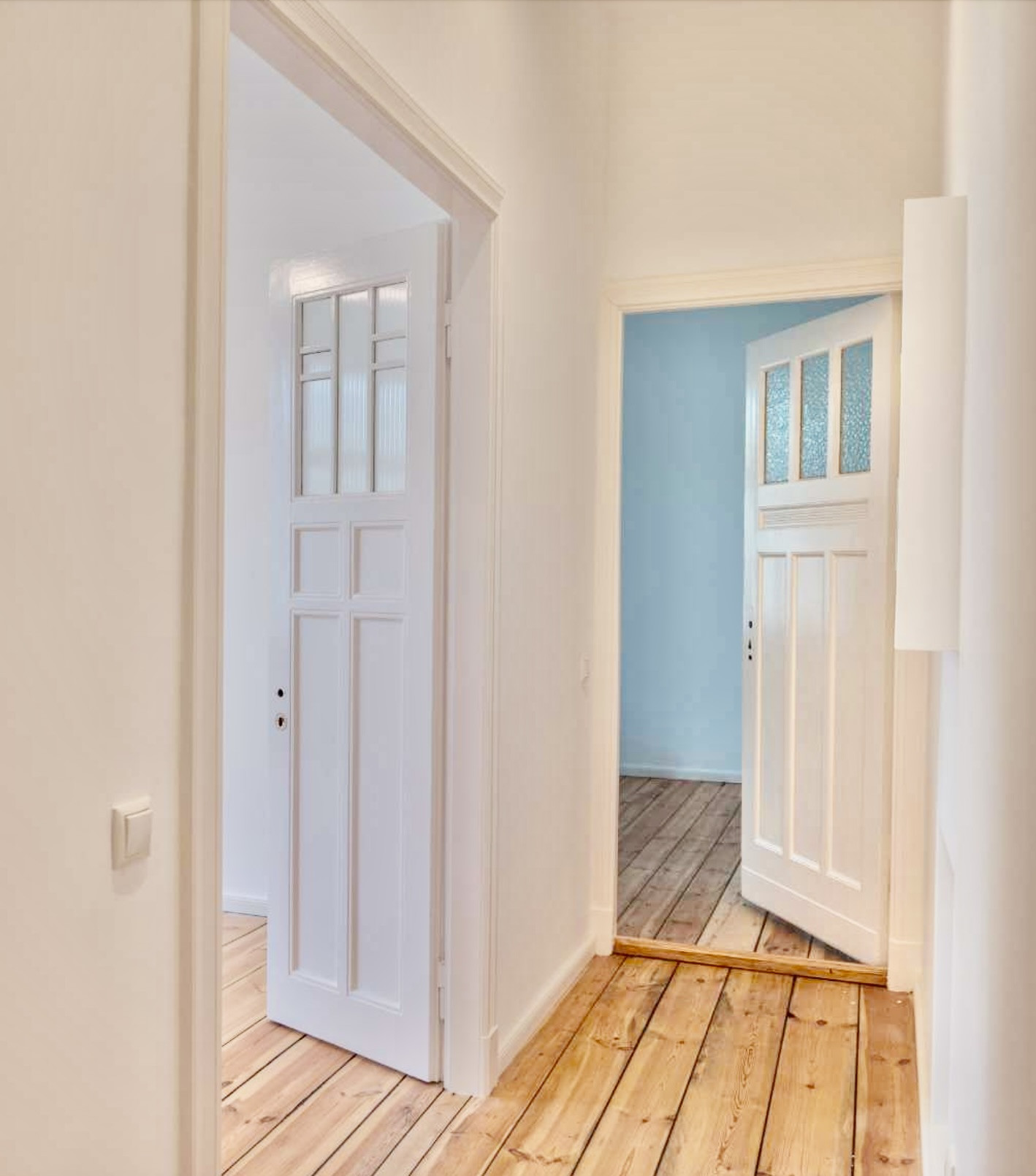 Eine gelungene Sanierung bringt neue Eleganz ins Zuhause: Der originale Holzdielenboden wurde restauriert und der Grundriss optimal angepasst.